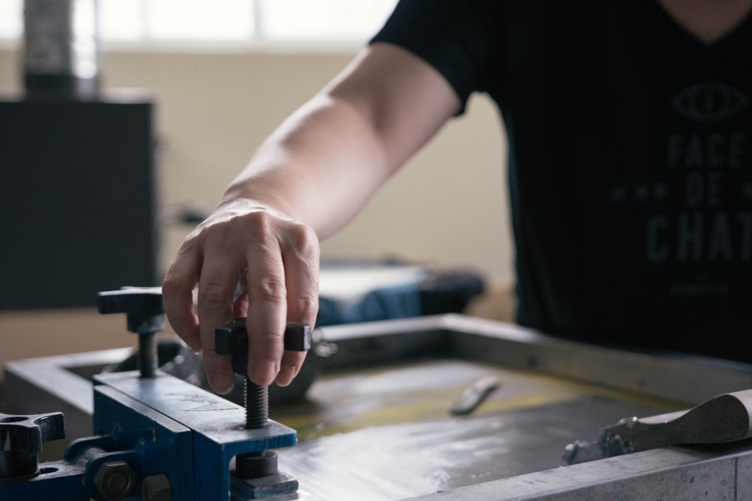 Les vêtements BONNETIER sont imprimés avec des encres écologiques à base d’eau. Les impressions sont faites à la main, un vêtement à la fois.
